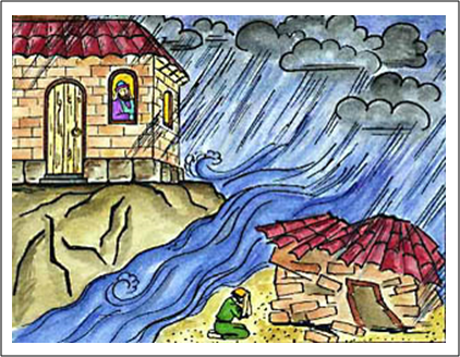 This is based on the parable ‘The Wise and Foolish Builder’ (Matthew 7:24-27).